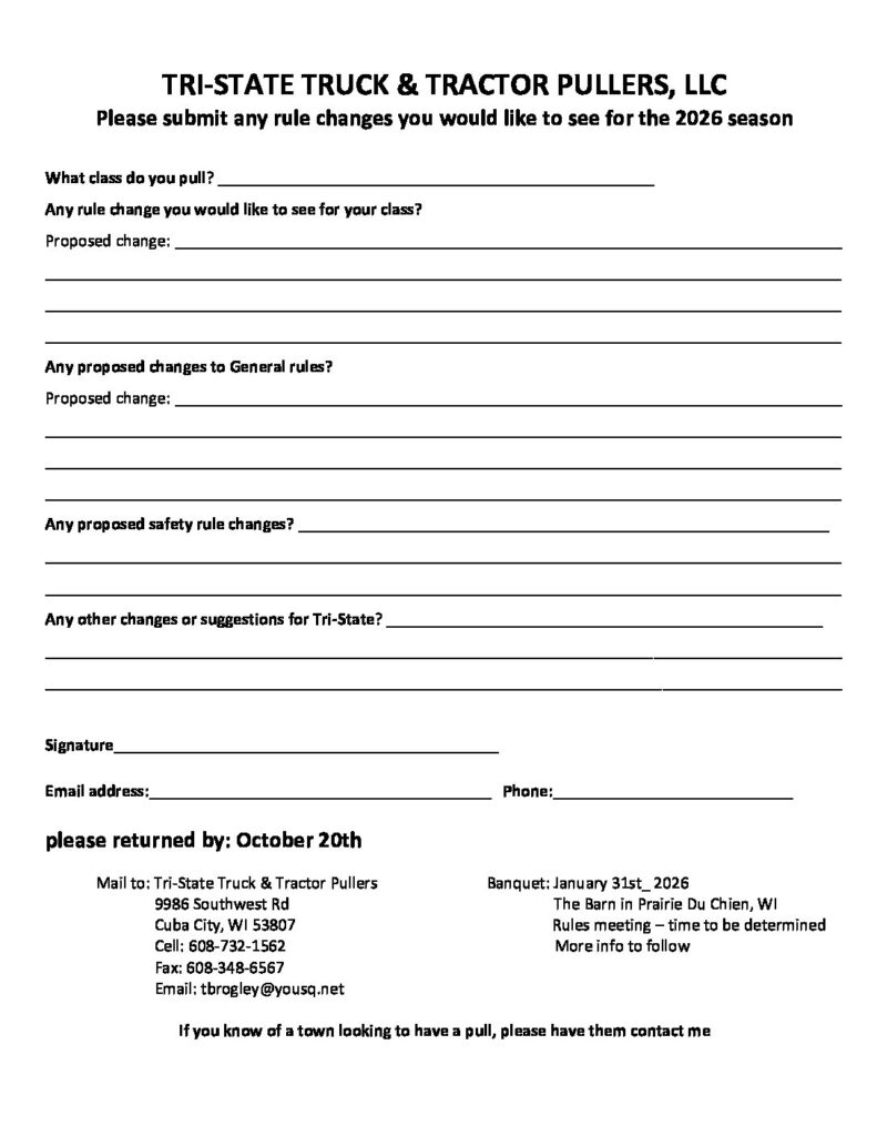 Mark your calendar. 2025 Banquet & Rules Meeting. January 31st 2026. The Barn in Prairie Du Chien, WI. All checks and proposal forms were mailed today.